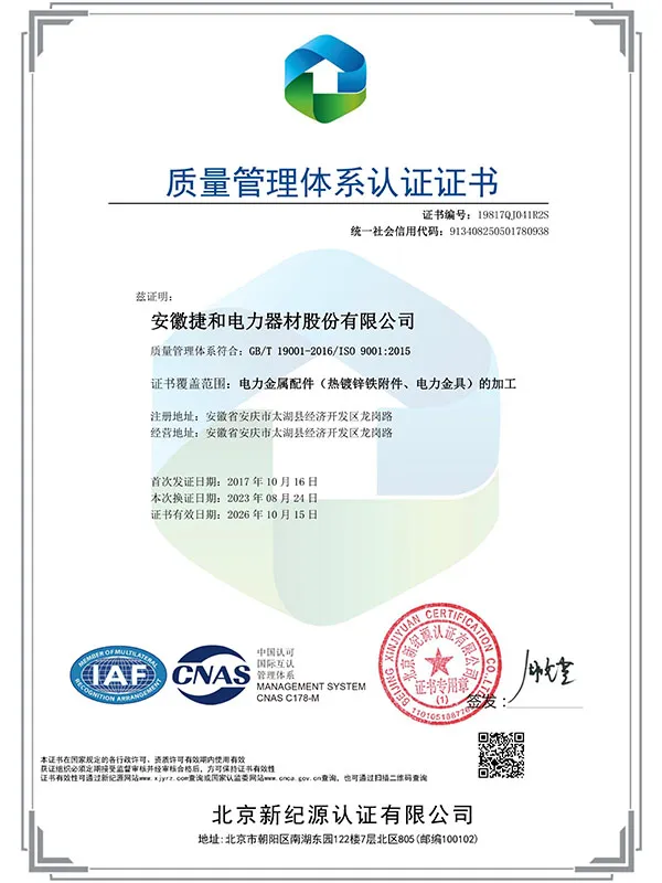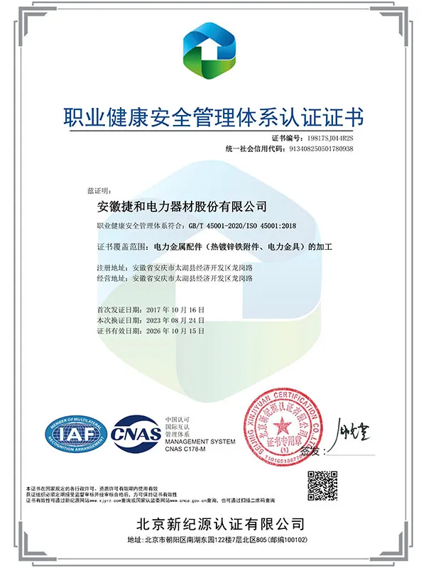 АО Аньхой Цзехэ Электрооборудование основана в 2012 году, уставный капитал составляет 30 миллионов юаней. Это промышленное предприятие, специализирующееся на обработке и производстве металлических деталей для электроэнергетики (горячеоцинкованные железные аксессуары). В настоящее время в компании работает более сорока сотрудников, площадь заводской территории составляет 28 му, а площадь производственных помещений — около 7400 квадратных метров. Компания является национальным высокотехнологичным предприятием, объединяющим исследования и разработки, проектирование, производство, продажи, монтаж и обслуживание. Компания расположена по адресу: улица Лунган, дом 5, экономическая зона развития уезда Тайху, город Аньцин, провинция Аньхой, по соседству с автомагистралями Шанхай-Чунцин и Цзинань-Гуанчжоу, а также железной дорогой Хэфэй-Цзюцзян, что обеспечивает удобное транспортное сообщение.
